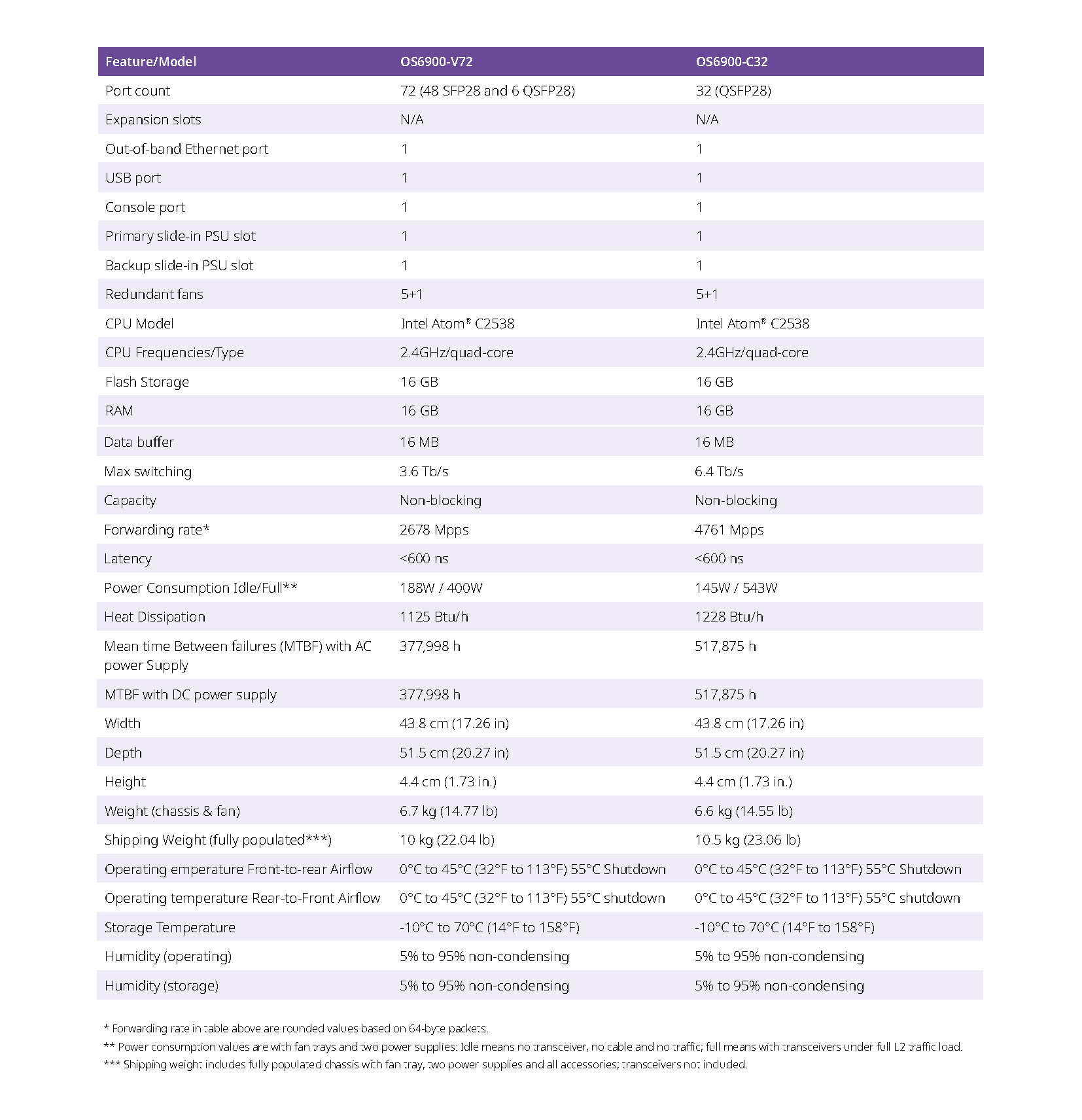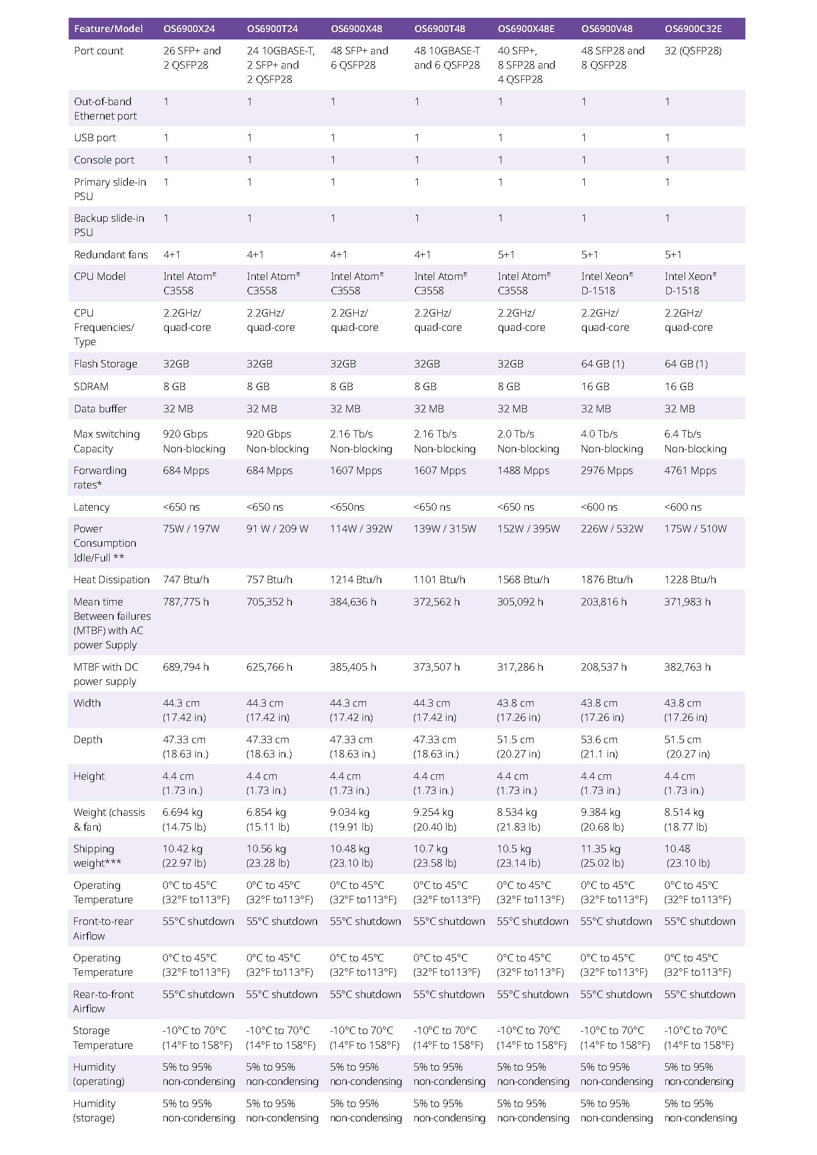 • 彈性硬體系統架構內建熱插拔電源和風扇,提供由前到後或從後到前風道的型號可選,在同類設備中可提供最低的單埠功耗
