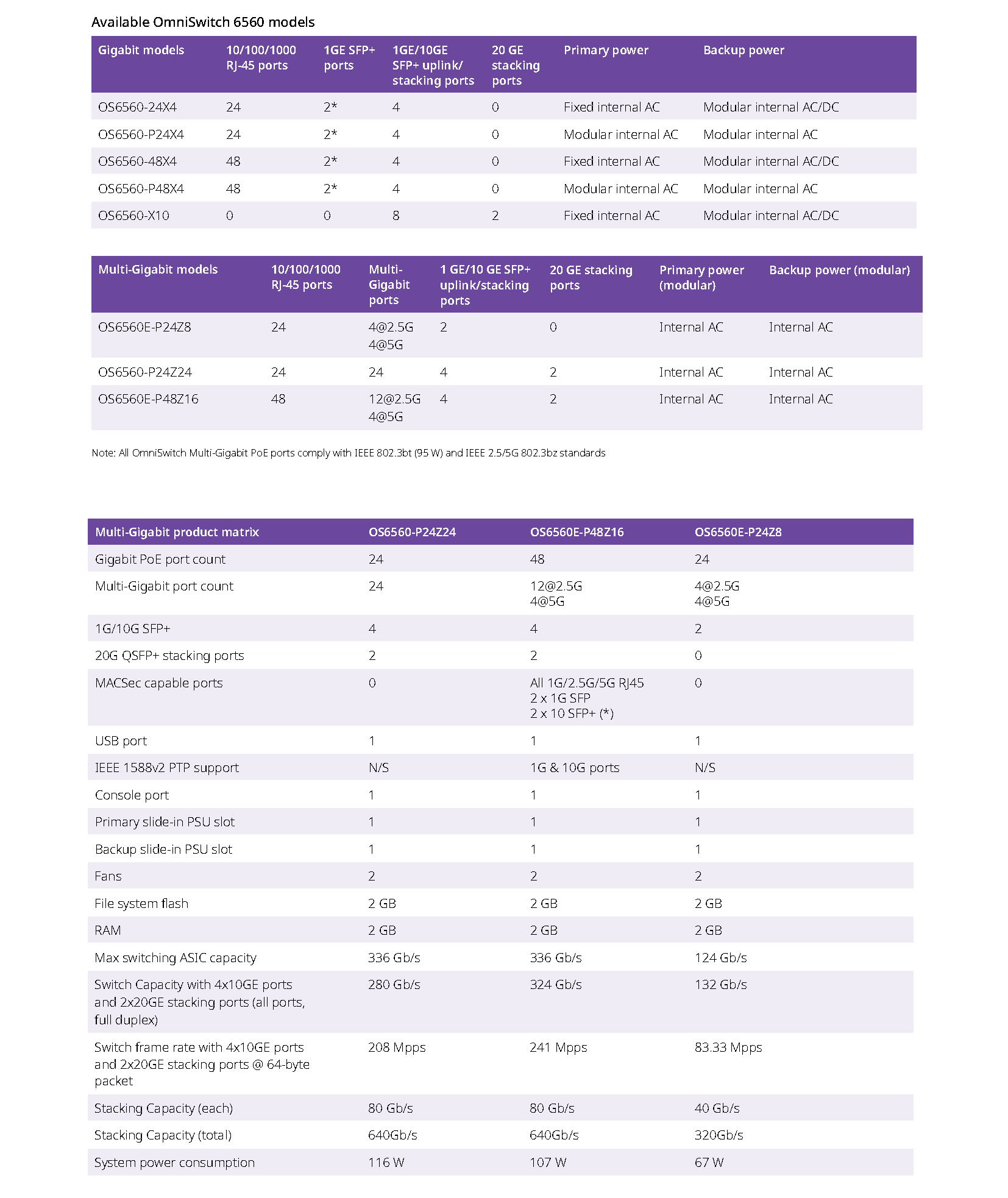 - OmniSwitch 6560 可堆疊多速率千兆乙太網級LAN 交換器系列是面向企業網路的業界領先的園區訪問解決方案