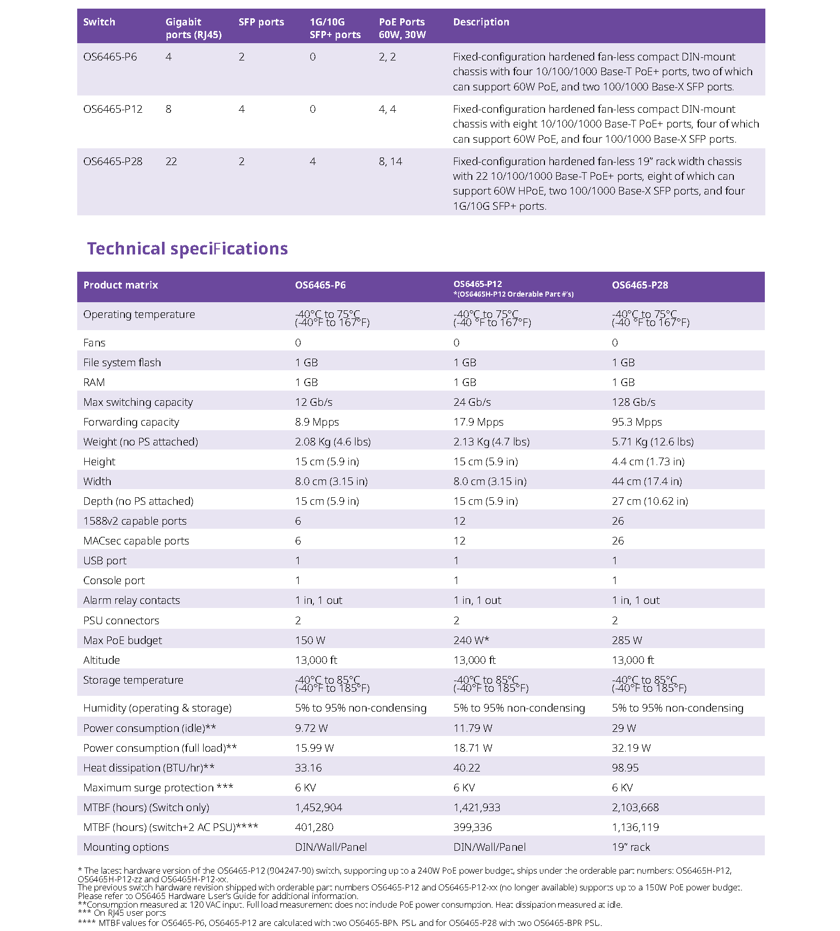 阿爾卡特朗訊 OmniSwitch 6465 是工業級加固、完全可管理、可擴充的千兆級乙太網路交換器。這些 DIN 導軌交換器和19” 可安裝式機架交換器專為工業乙太網路而設計,是智慧交通、鐵路和公用事業等多種工業應用的理想選擇。