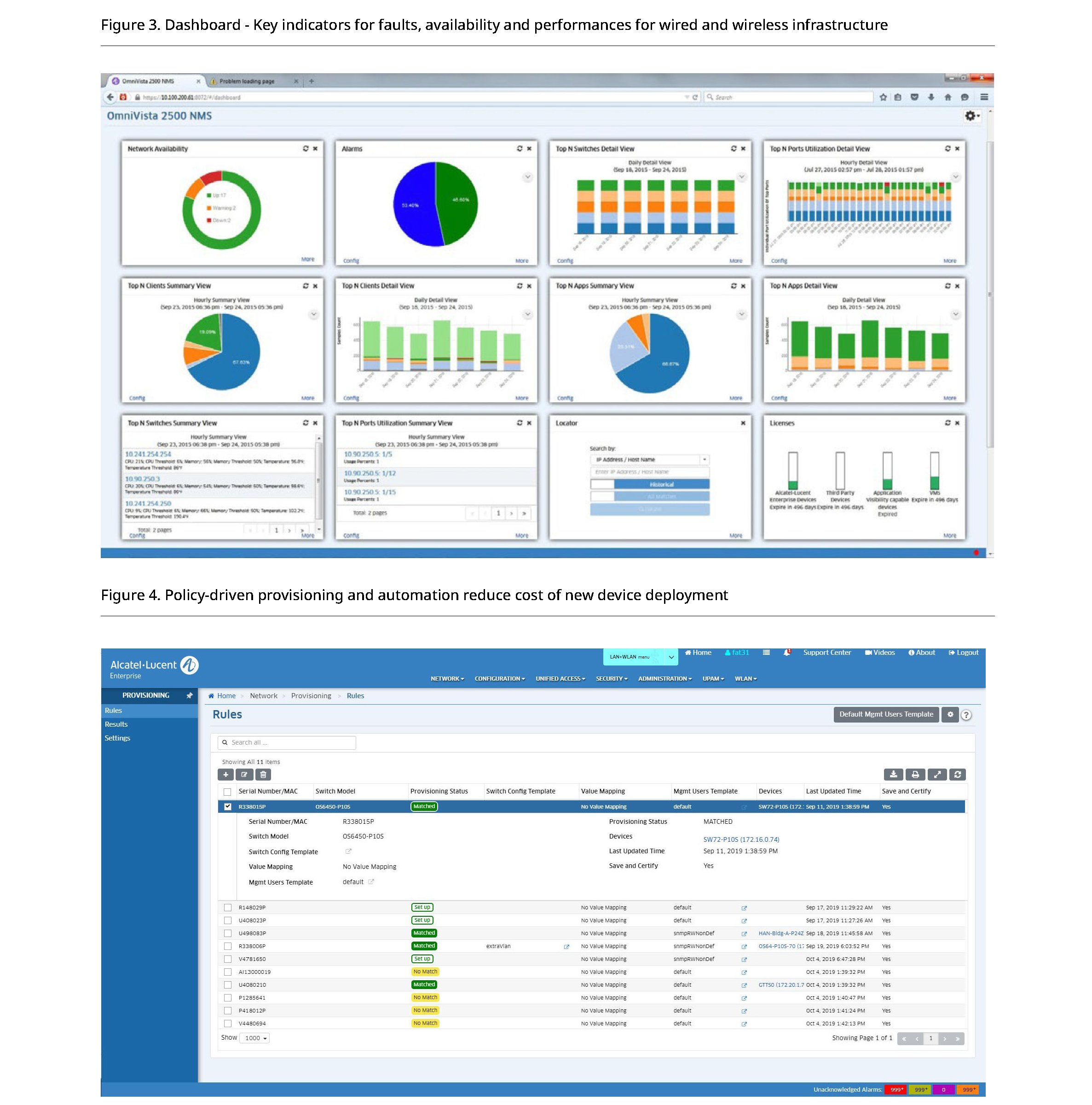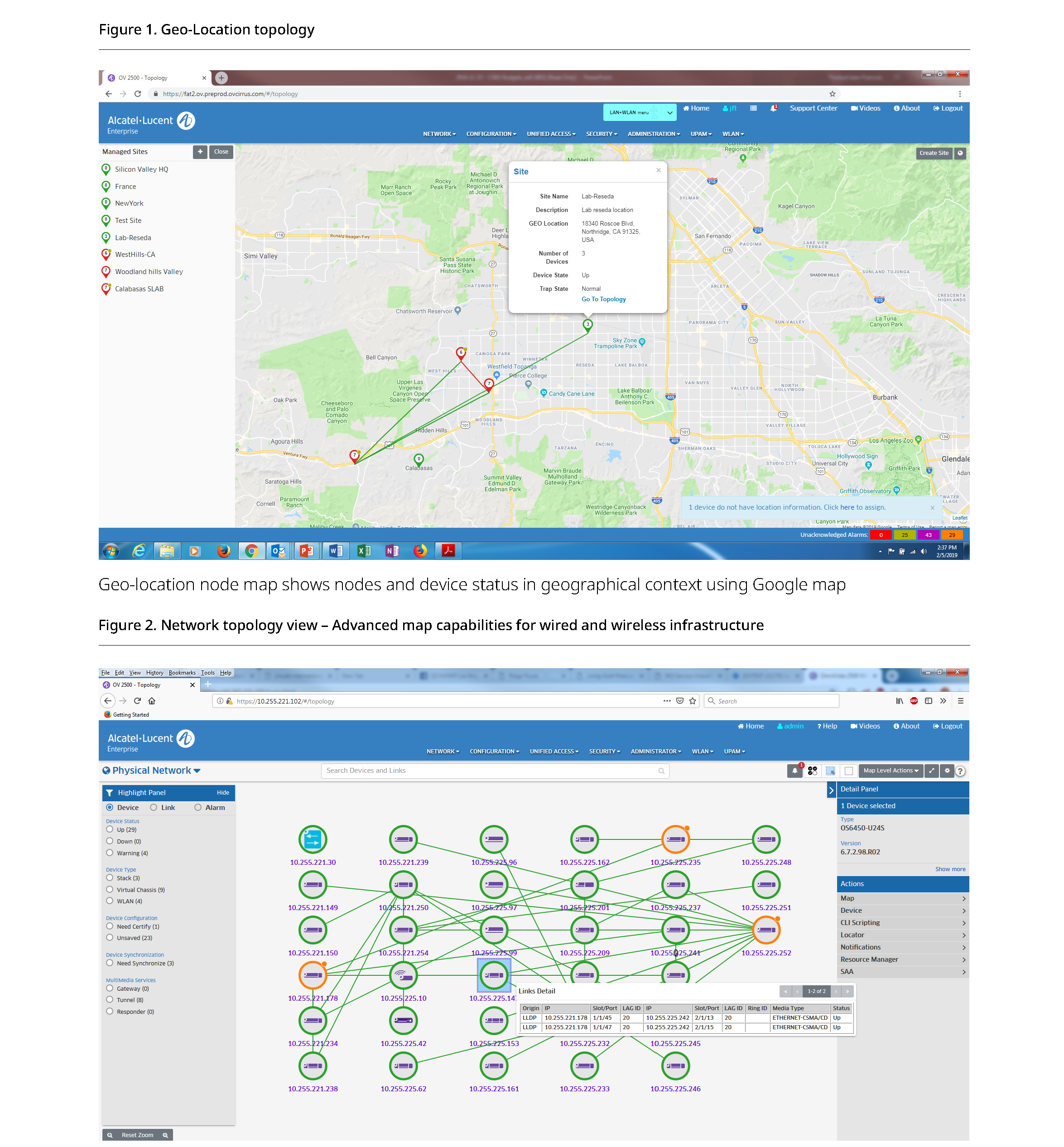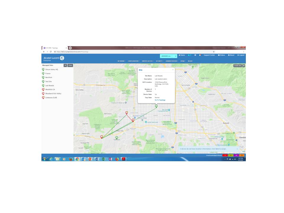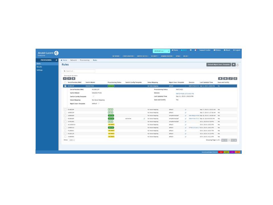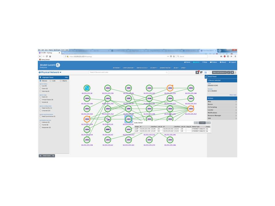 網路發現 :透過 SNMP v2c/v3 詳細發現阿爾卡特朗訊 OmniSwitch 系列交換機和第三方設備,透過無線和無線射頻服務配置註冊 Stellar 無線存取點。
