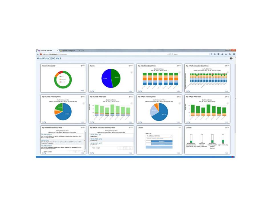 綜合網路管理平台:OmniVista 2500 具備綜合網路管理功能,包含全套所需的組件和工具,為阿爾卡特朗訊企業通信的全系網絡產品提供一套完整的網路管理系統,實現網路的配置、設備監控、sflow 流量採樣分析、DPI ( 深度套件檢測) 應用分析、應用特徵庫升等級/ 分發、安全性、設備配置、警告管理、加速、當機處理和全面管理,支援 HA 高可用模式部署。